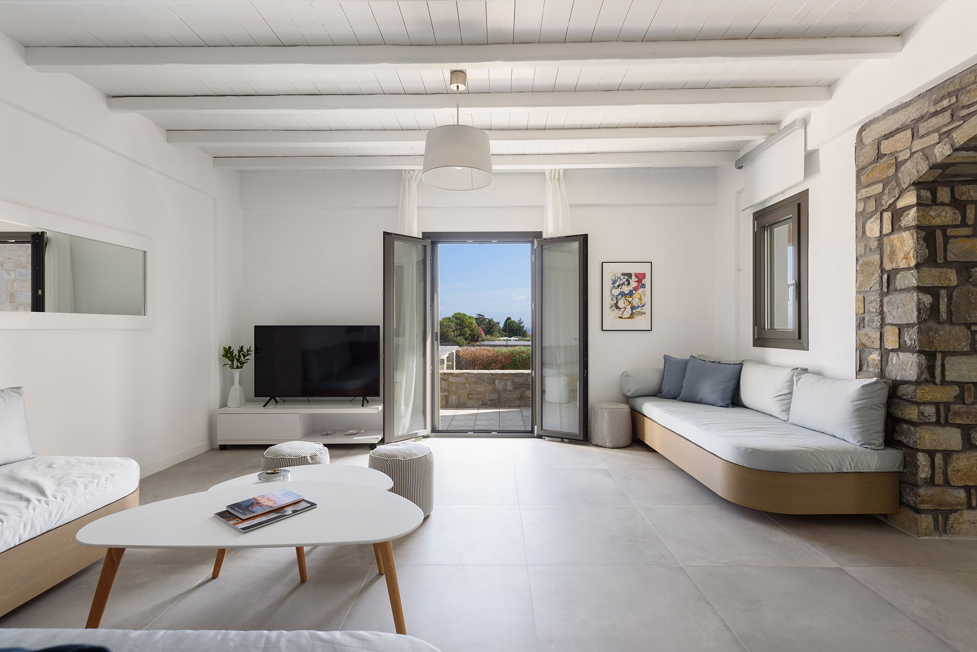 The incredible view, the sunlight, the sea and the Aegean wind, together with all the comforts, make this luxurious villa with sea view the best possible experience of relaxation and harmony in this fascinating island of Cyclades.